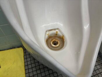 事務所のトイレということで、多くの方が使用するので、尿石汚れなどが蓄積されていました。
